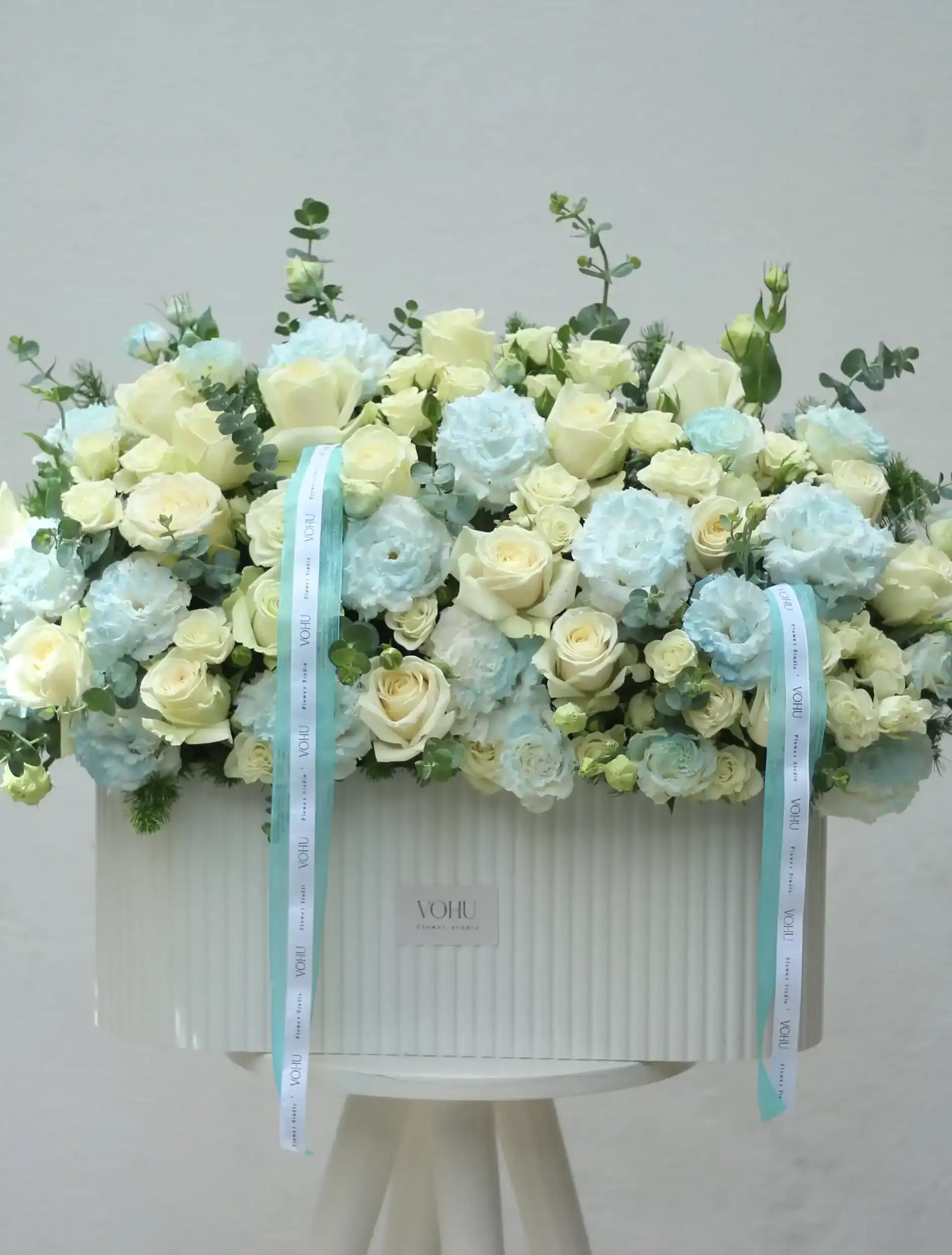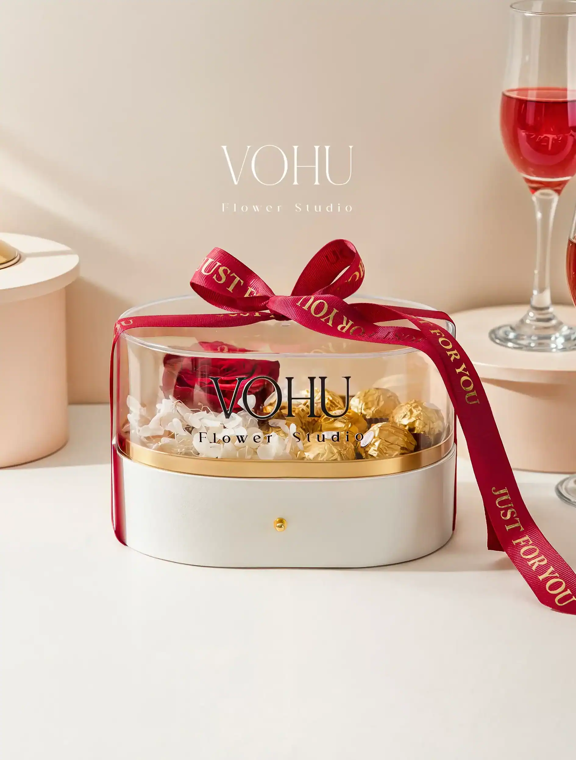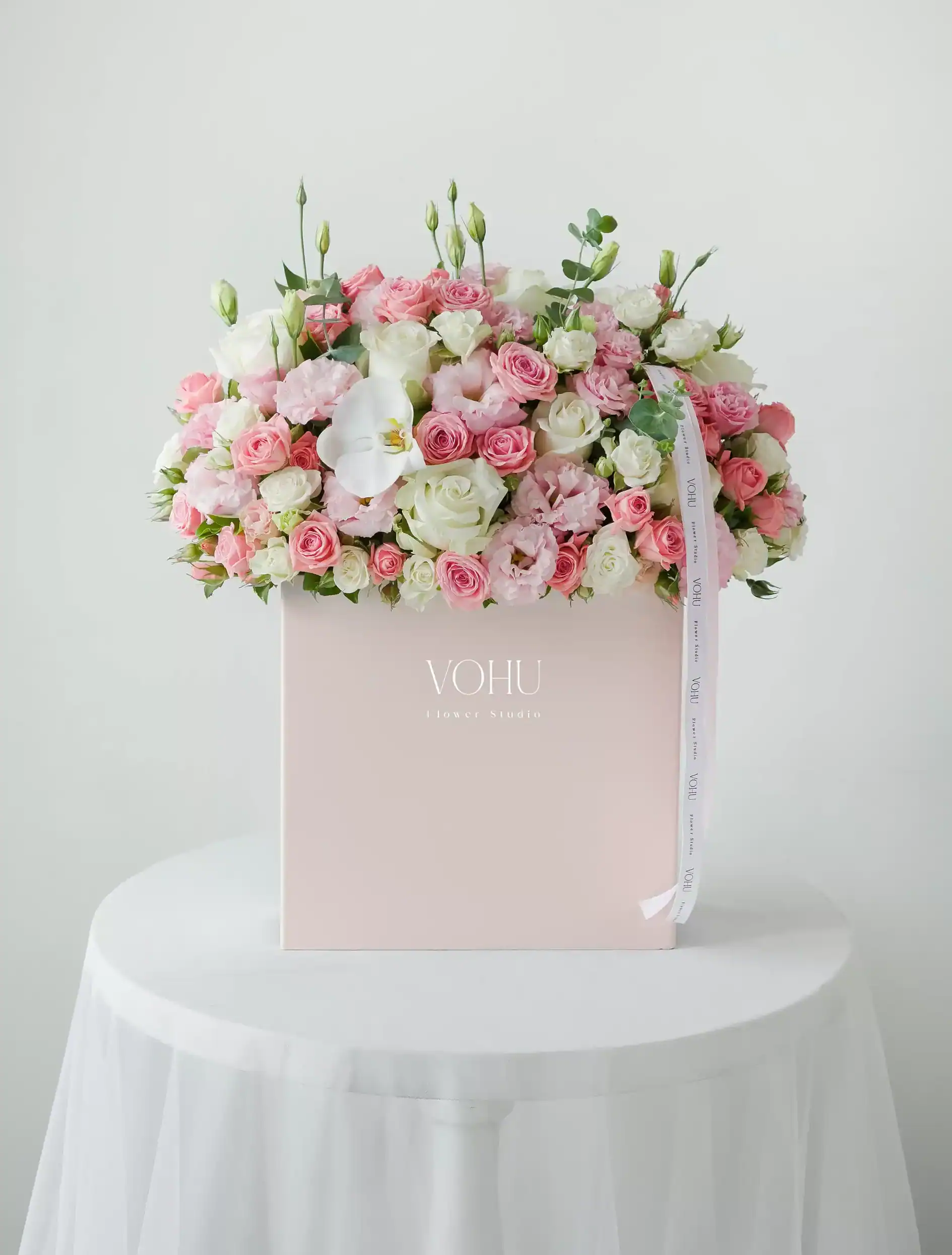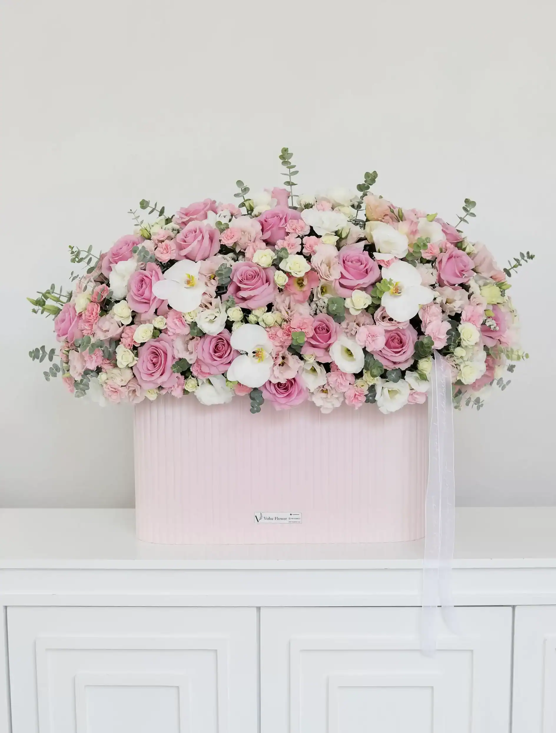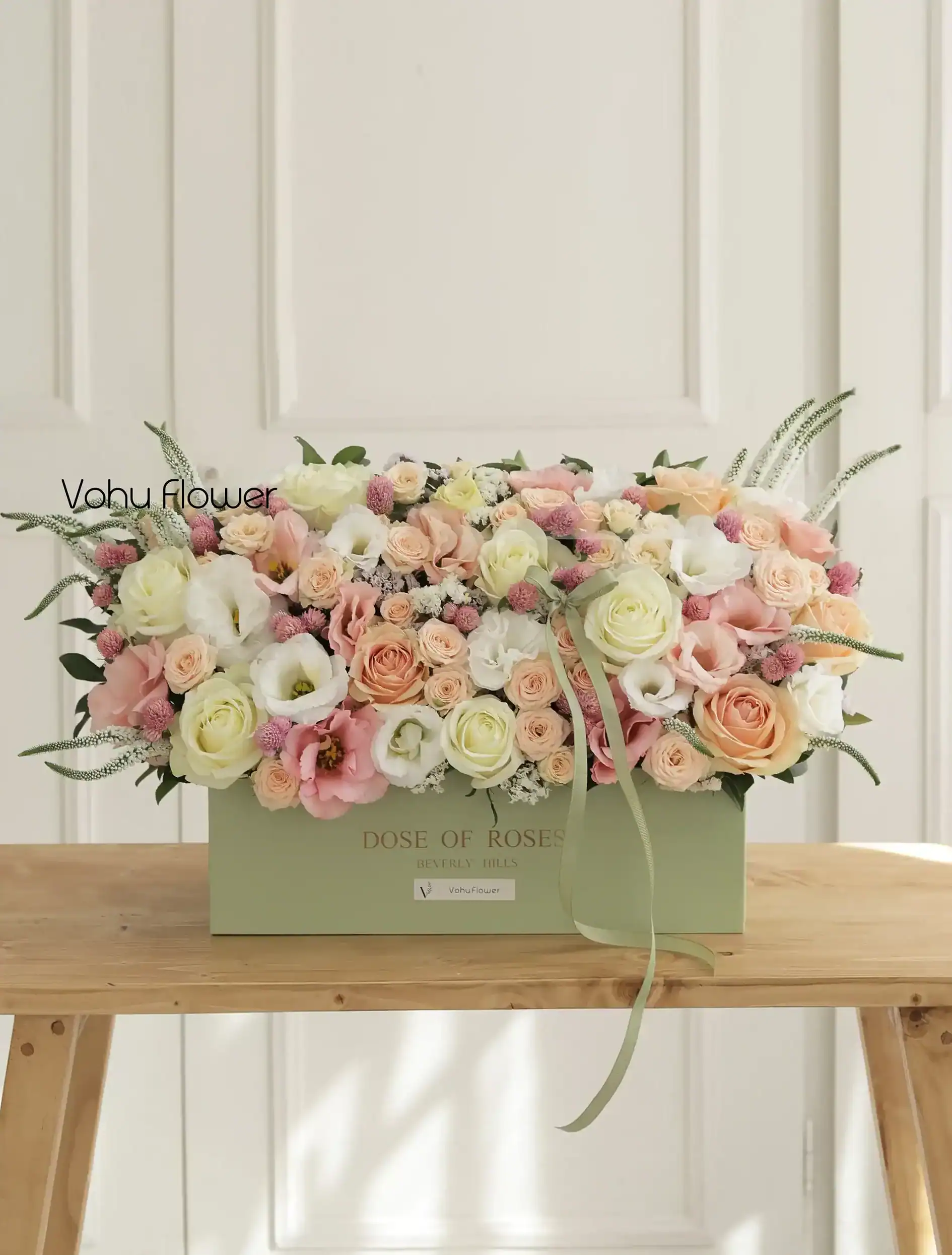 - طراحی: باکس گل با روبان یا باکس گل روبانی در مدلهای گرانتر، ظرافت بیشتری در دیزاین دارد. مثلاً باکس گل برای افتتاحیه یا باکس گل تولد مردانه در ردههای قیمتی بالاتر، جزئیات بیشتری دارند.
