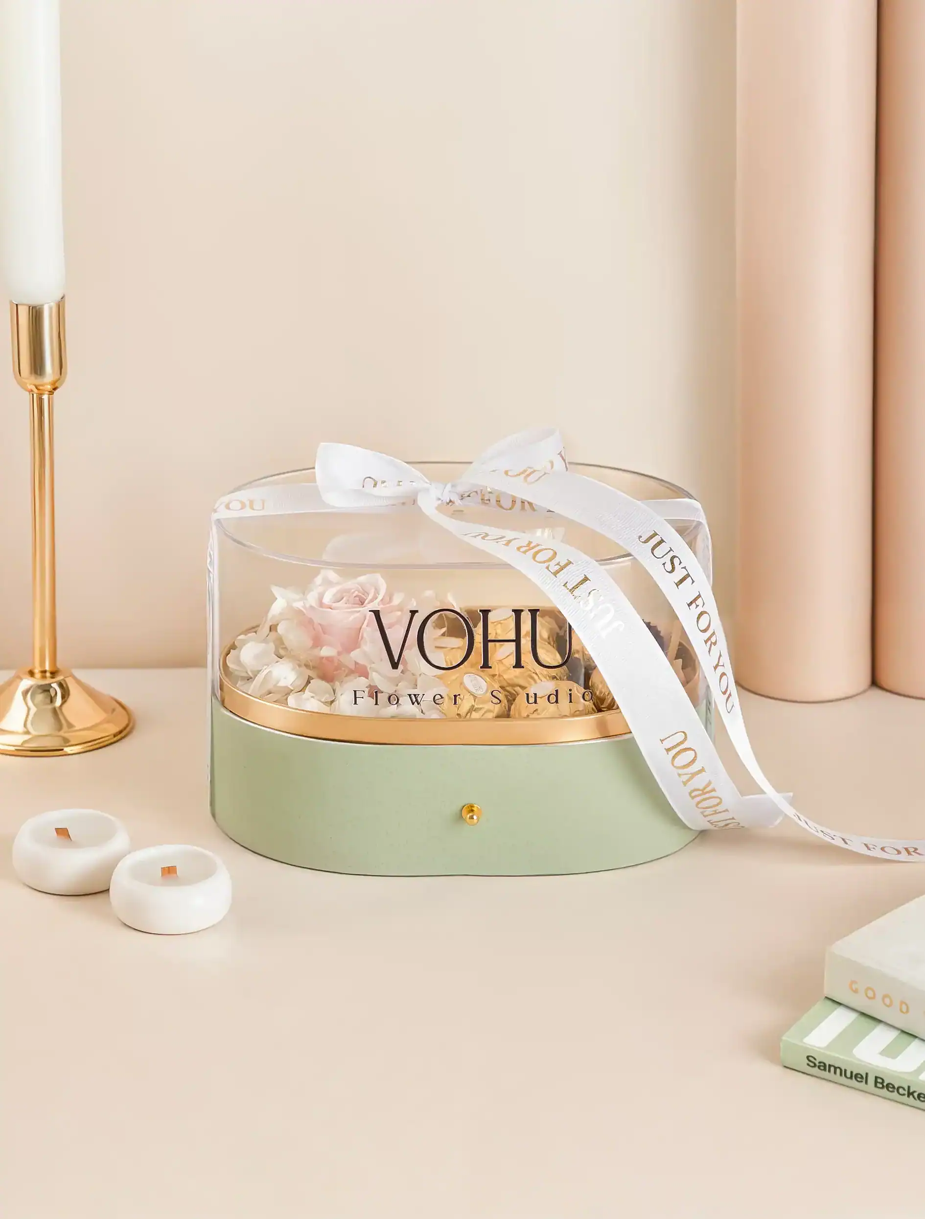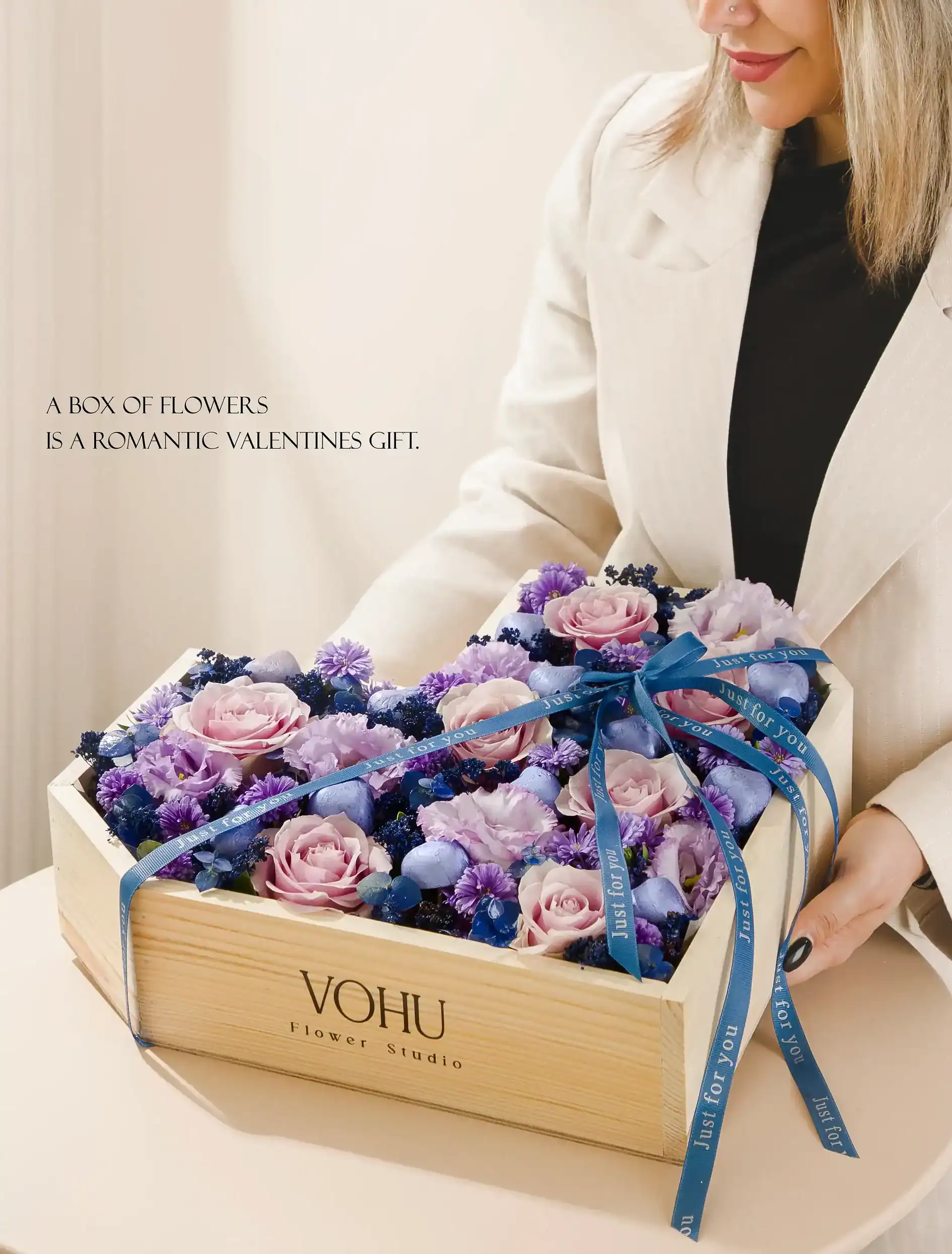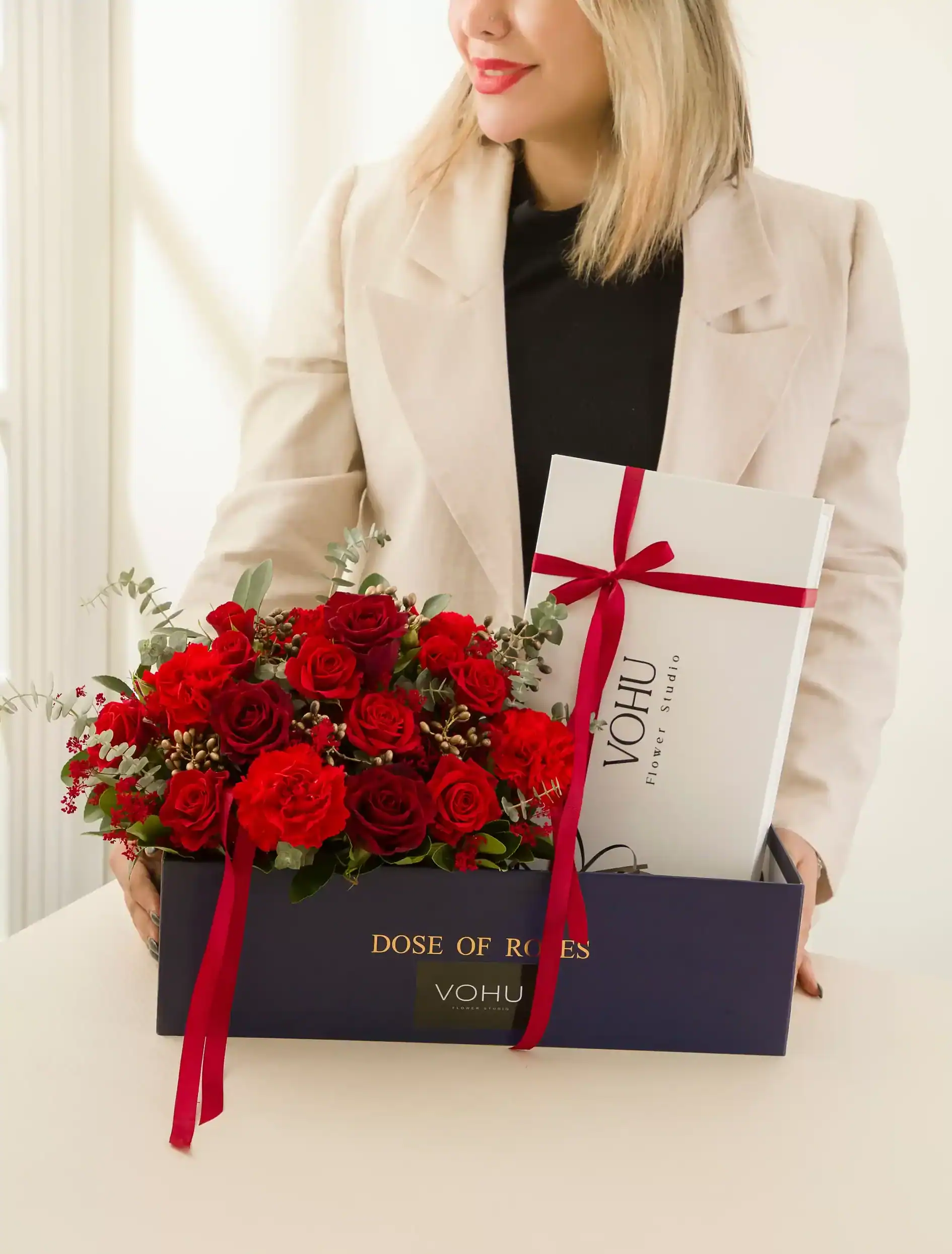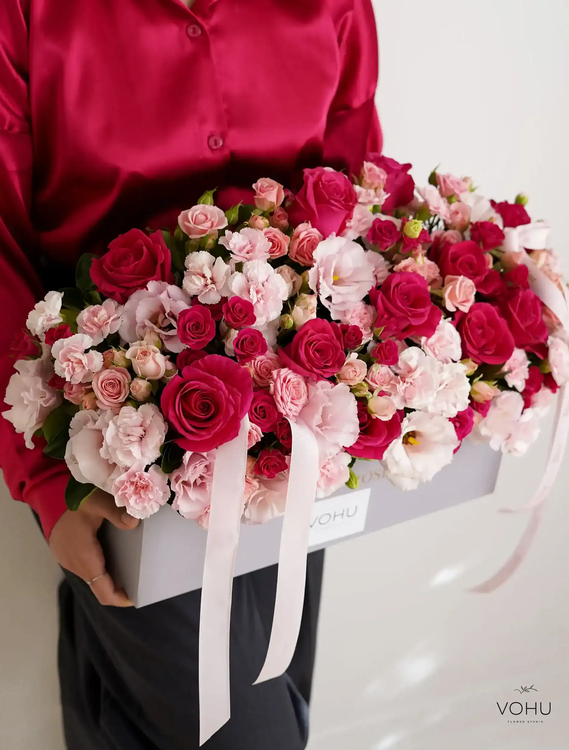 - ورود به سایت: به آدرس vohu.co بروید و دستهبندی باکس گل را انتخاب کنید.
