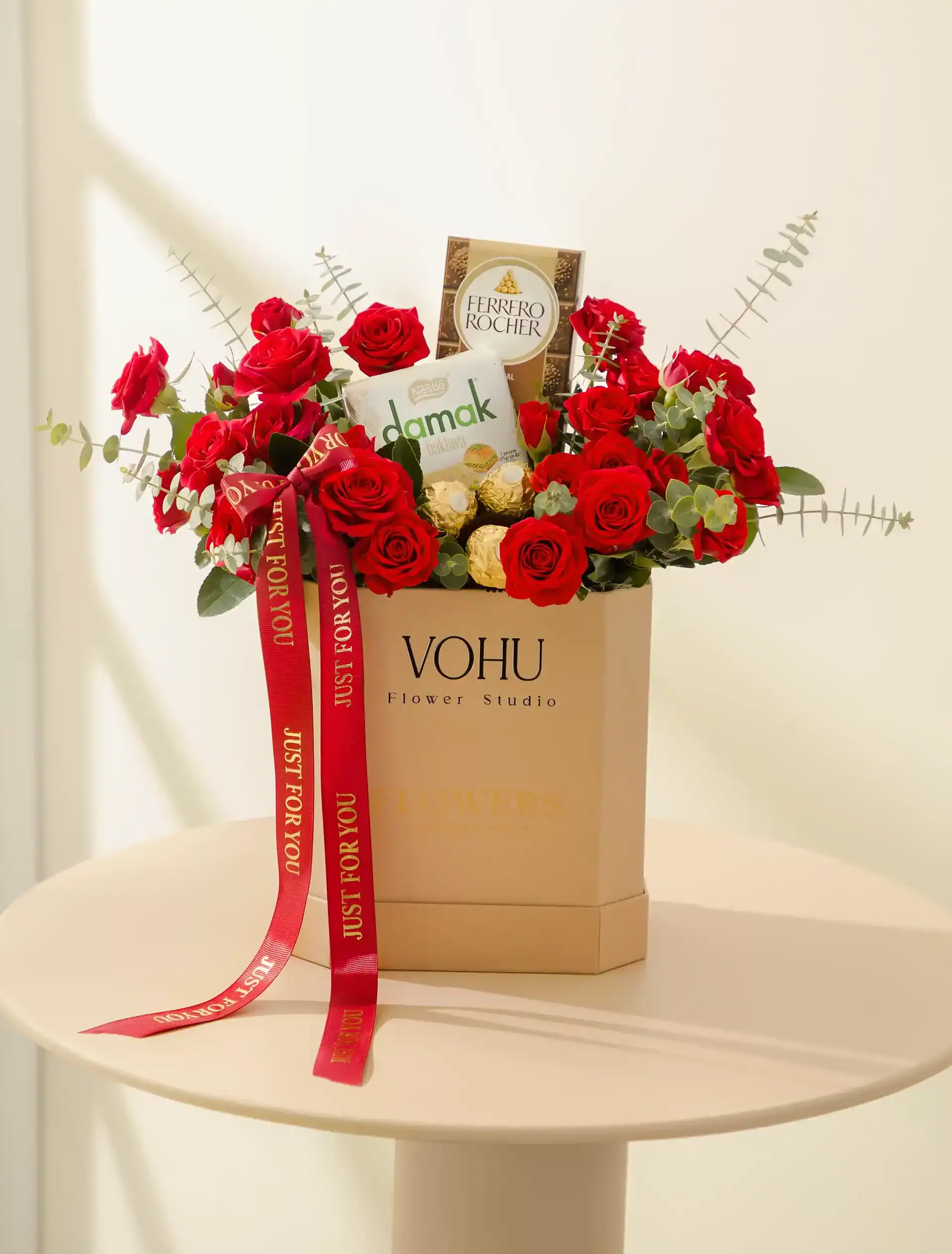- سبد گل رز قرمز: اگرچه بیشتر به شکل سبد است، اما در دسته باکس گل جعبهای قرار میگیرد و برای باکس گل برای تولد یا باکس گل هدیه بسیار پرطرفدار است.