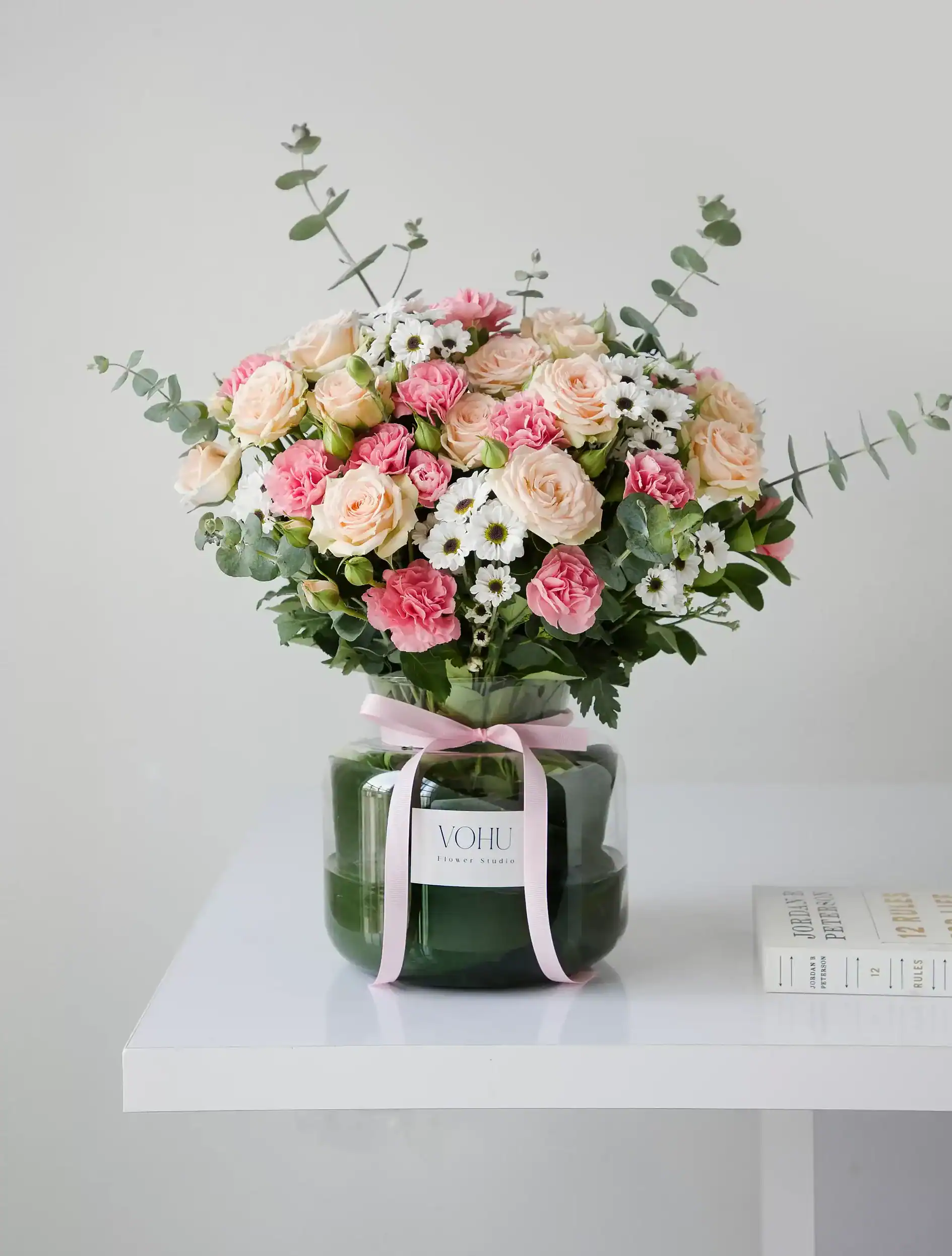 دسته گل رز مینیاتوری و میخک هیوا