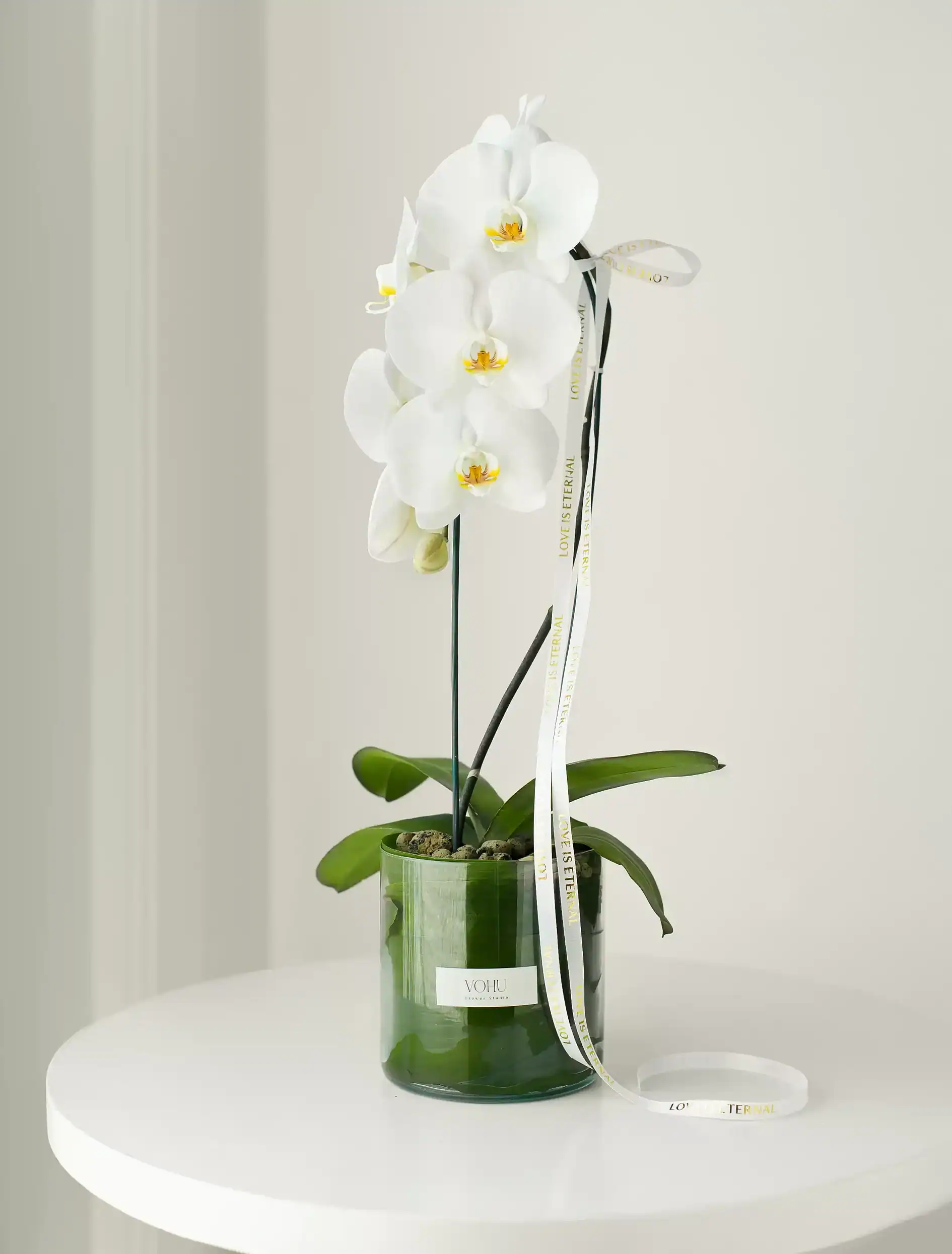 گلدان شیشه ای ارکیده سفید